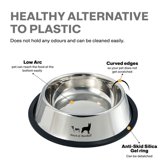 Patch & Marshall Pet Feeding Bowls – Stainless Steel with Anti-Skid Ring