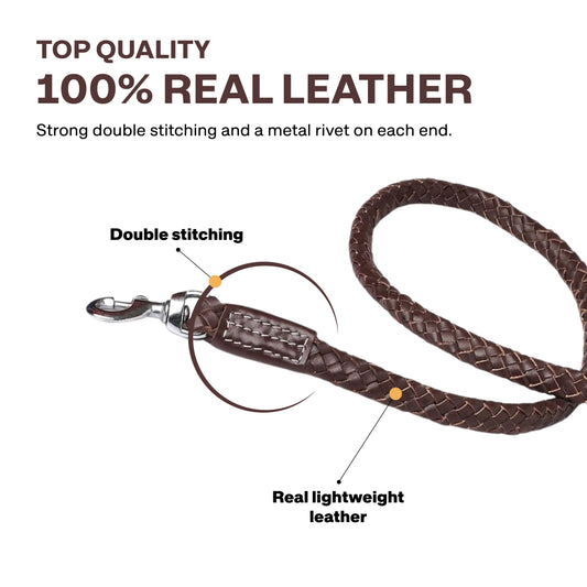 Patch & Marshall Leather Dog Training Leash – 5 ft Heavy Duty Leash with Strong Hook