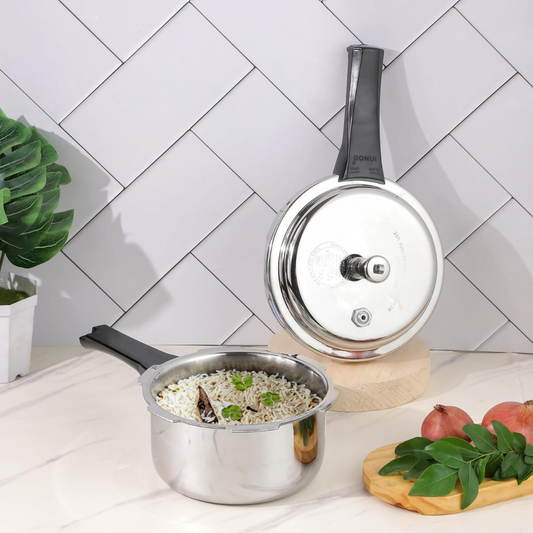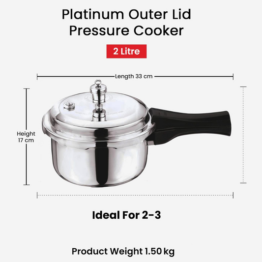 Vinod Platinum Triply Stainless Steel Outer Lid Pressure Cooker102 oz Capacity - ISI Certified, Silver, Induction Friendly, Pressure Cooker for Home Cooking