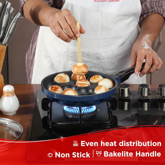 Vinod Zest Aluminium Non Stick Paniyarakal With Glass Lid - 12 Cavities, 8 inches
