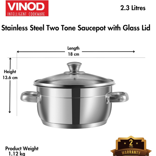 Vinod Two Tone Stainless Steel Sauce Pot/Saucepan with Glass Lid - 78 oz ,7.02 inches