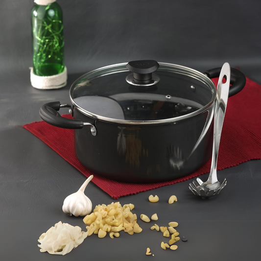 Vinod Black Pearl Hard Anodised Saucepot with Glass Lid 379 oz Capacity 12 inches with Riveted Sturdy Handles - 3.25 mm Thickness, Black (Gas Stove Compatible)