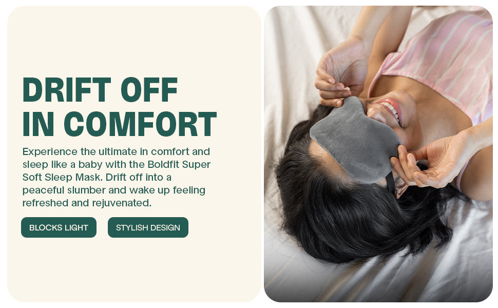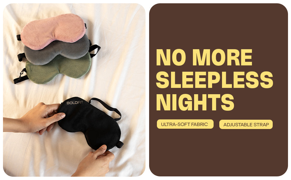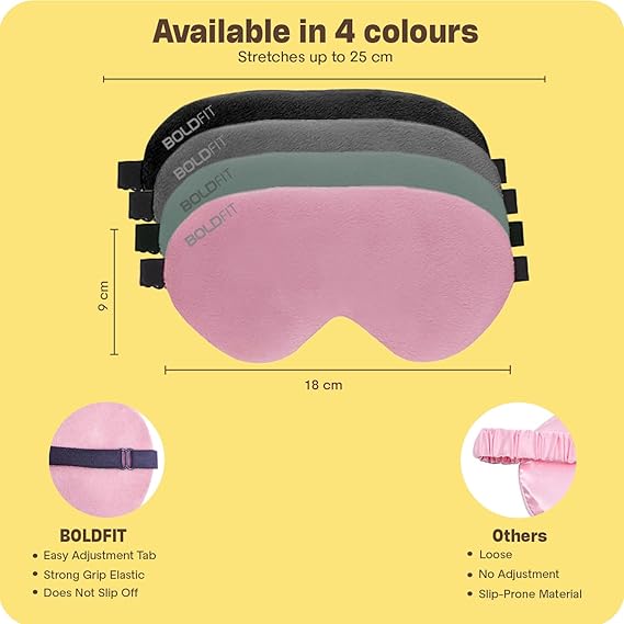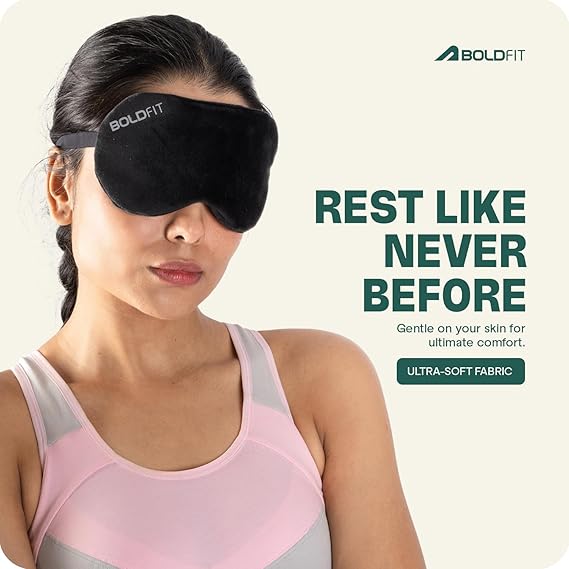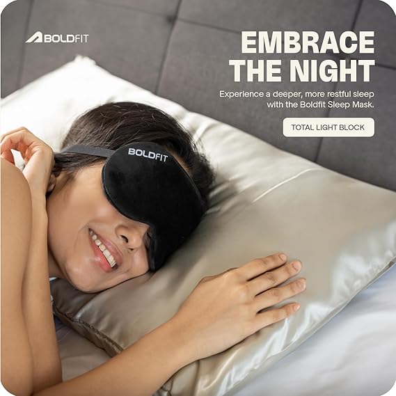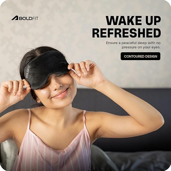 Boldfit Eye Mask for Sleeping with Adjustable Strap Super Soft Sleeping Mask Blind Fold for Comfortable Sleep Travelling Sleep Mask Pad for Girls - Black, Silk