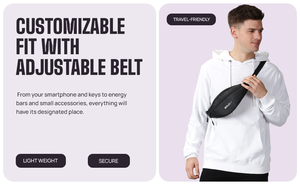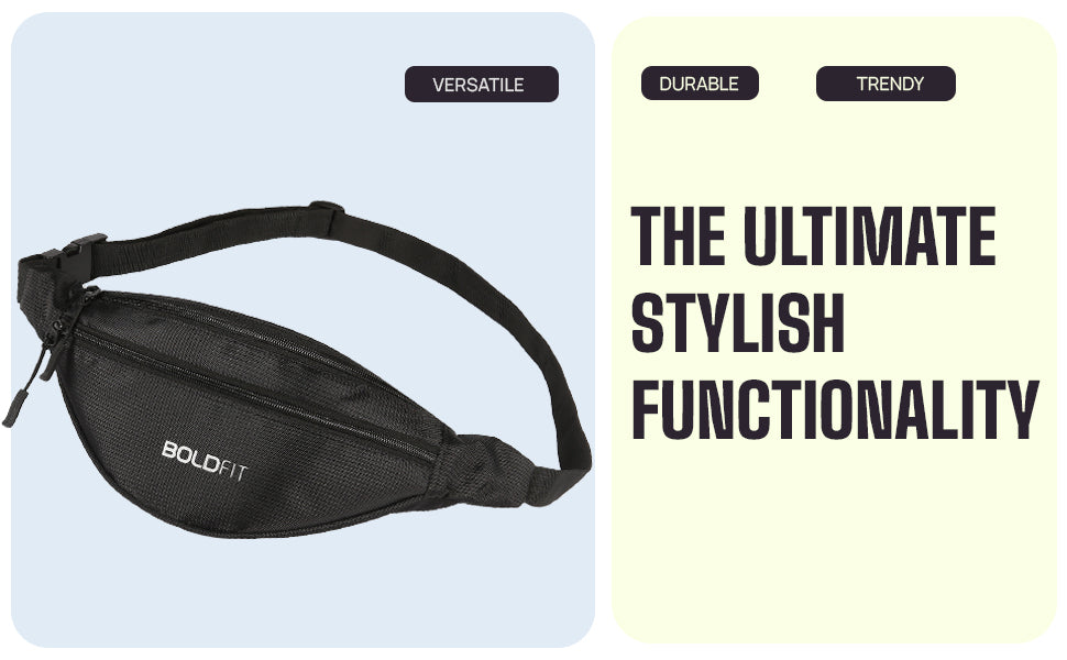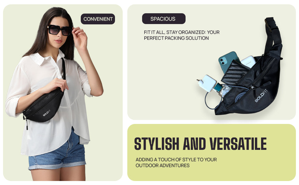 Boldfit Waist Bag for Men Travel Bag for Men Chest Bag for Men Travel Fanny Pack for Men Waist Bag for Women Side Bag for Men Travel Accessories/Pouch/Hand Purse. Mobile Bag/Money Bag - Black