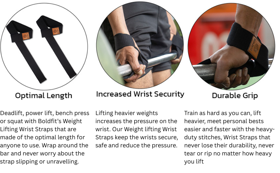 - WRIST SUPPORT AND GYM HAND GRIP - Without improper support, your wrist becomes open to injuries, strains and sprains. These weight lifting straps act as the ideal wrist supporter for gym. When worn correctly, they aid your wrists during weight lifting, like deadlift and so on as they not only secure the wrist but also improve your gym hand grip. This avoids weights falling on you.