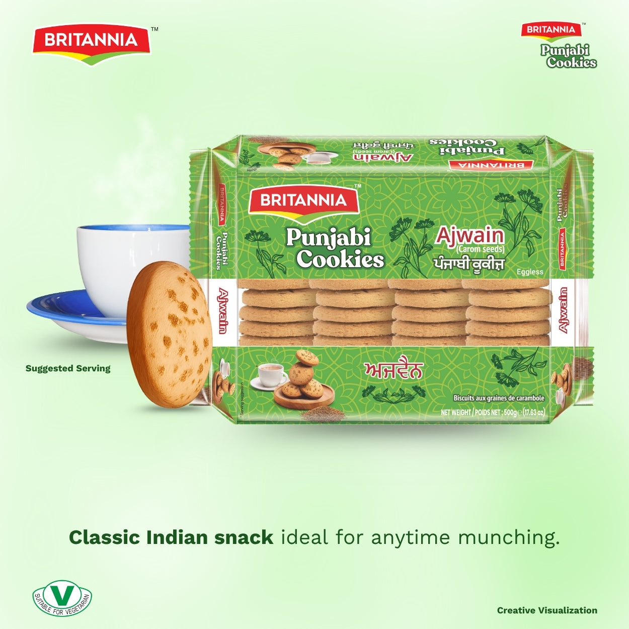 Britannia Punjabi Cookie with Aromatic Ajwain Flavor | Pack - 500GM | Traditional Indian Biscuits | Crunchy Snack Perfect with Tea or Coffee