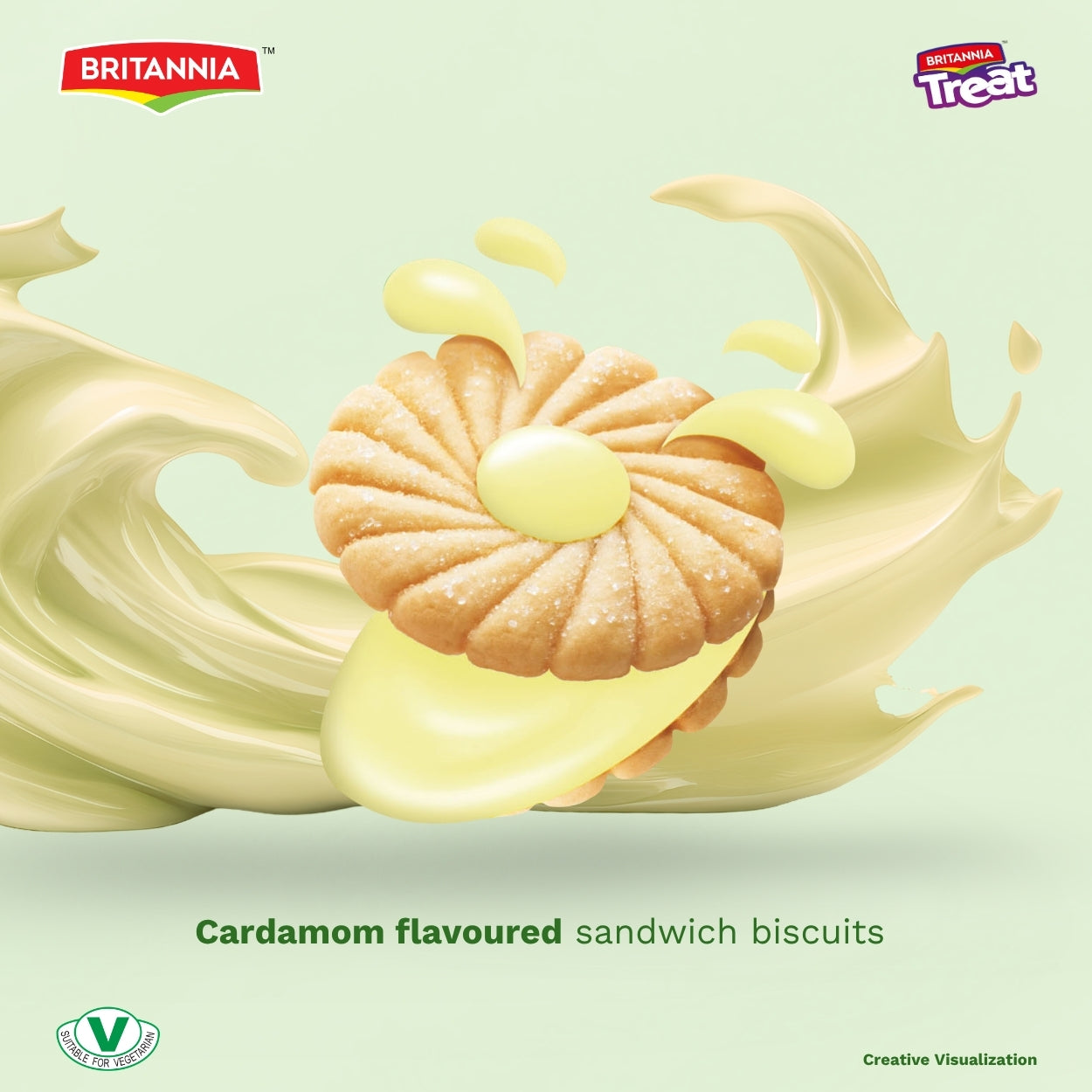 Britannia Treat Cardamom-Flavored Cream Biscuits | Family Pack | Perfect Snack for Tea Time | 500gm