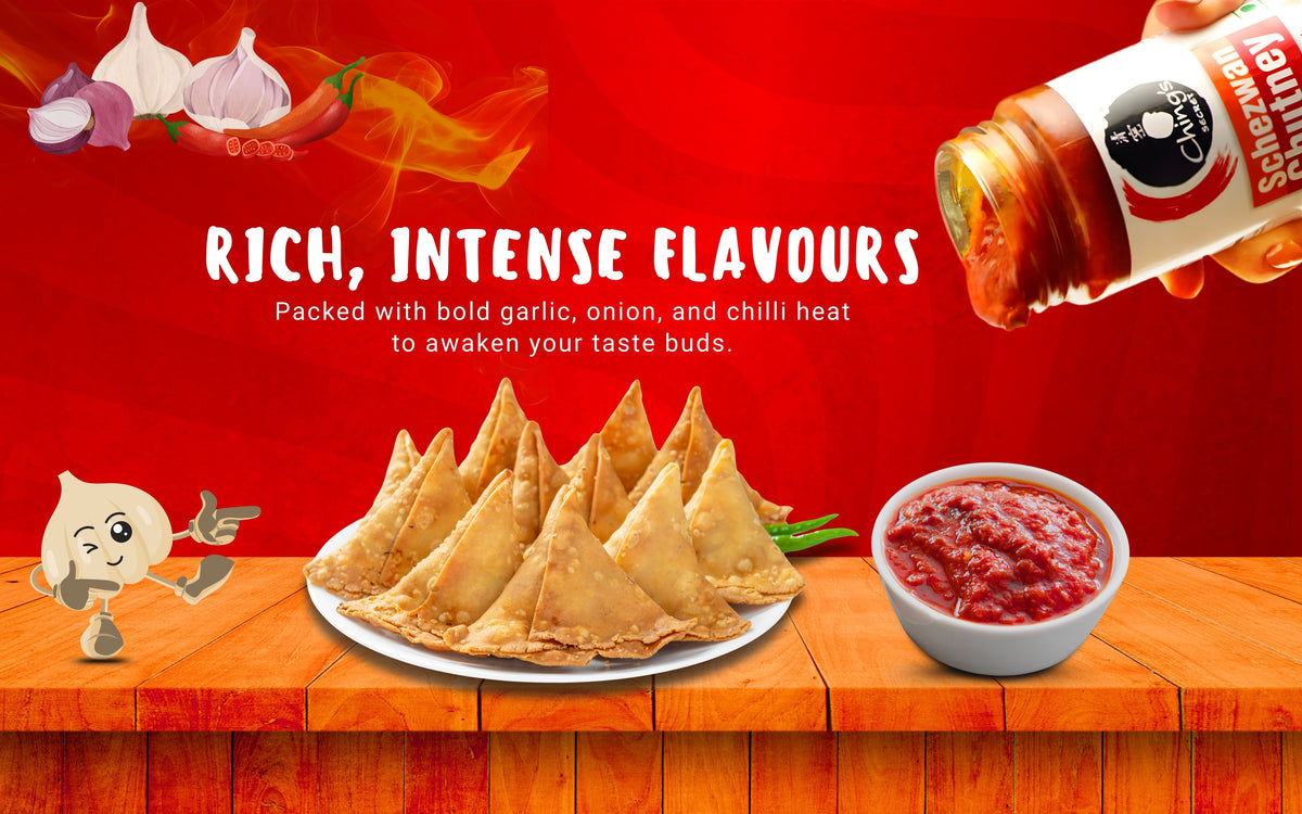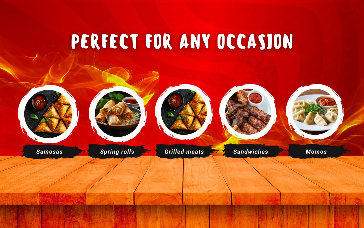 - Spicy and tangy Indo-Chinese chutney made with a flavorful blend of chilies, garlic, and spices