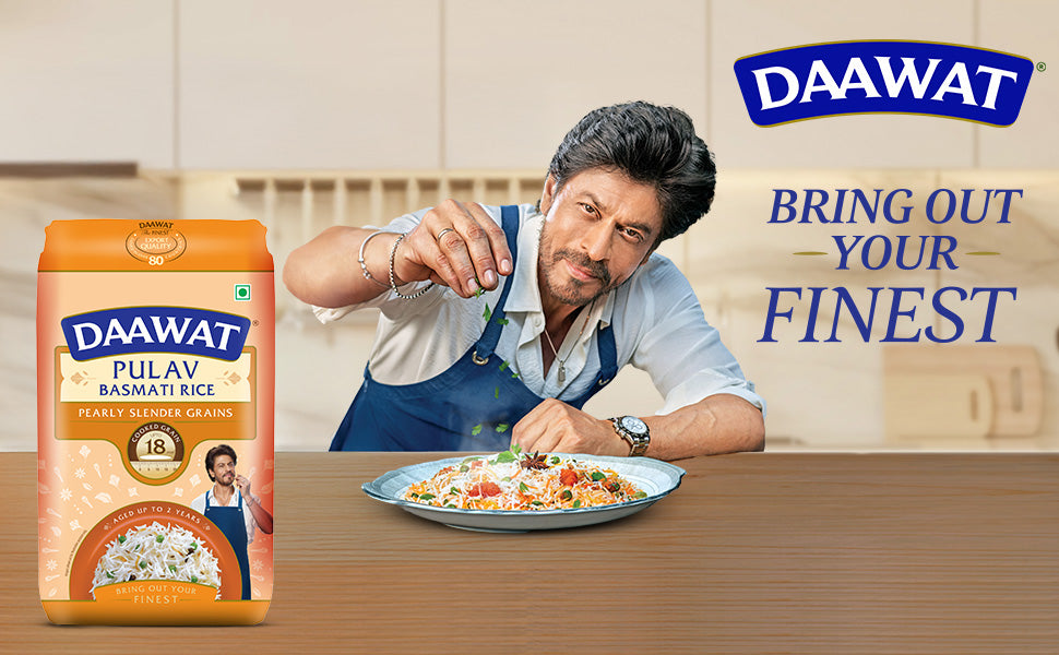 Daawat Pulav Basmati Rice 5Kg| Pearly slender Grains| Cooked Grain Upto 18mm*| Long & Fluffy Pulav Rice