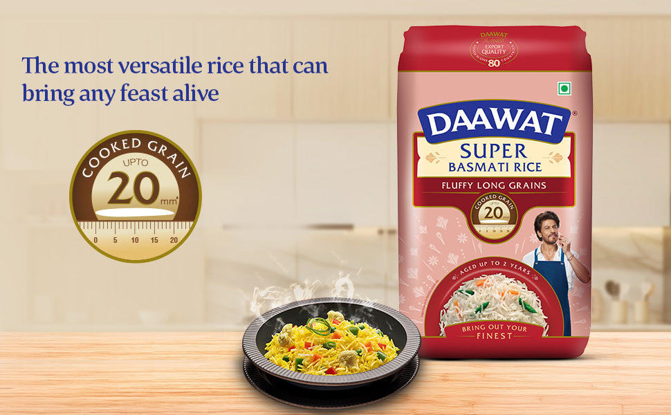 Bring home the perfect combination of quality, aroma, and value with Daawat Super Basmati Rice 5kg (25% Extra). Specially aged to enhance its natural fragrance and texture, this long-grain basmati rice cooks up beautifully long, fluffy, and non-sticky, making it ideal for everyday meals as well as special dishes.