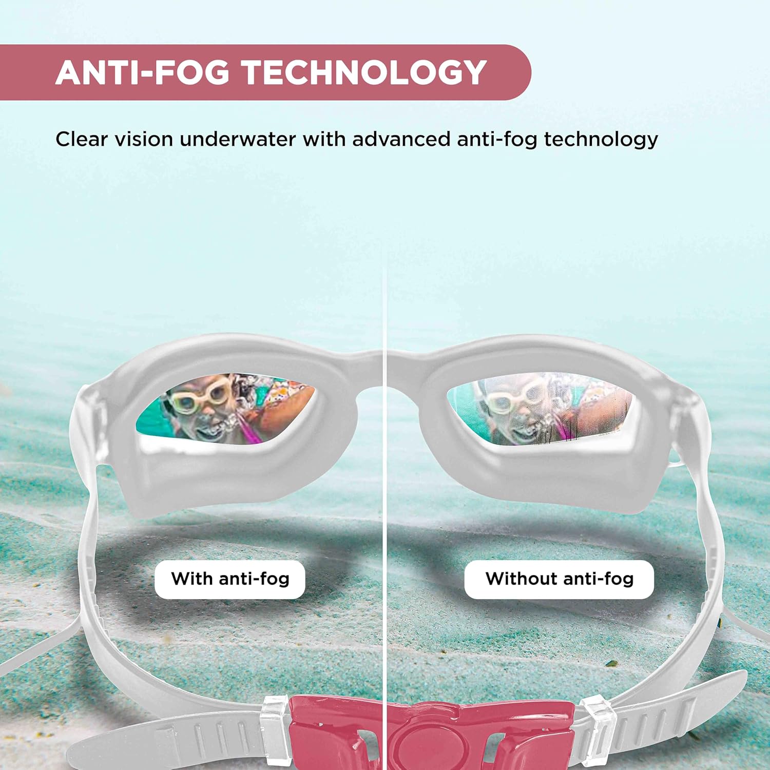 - ADVANCED ANTI-FOG TECHNOLOGY: Equipped with cutting-edge anti-fog technology, ensuring clear vision and minimizing fogging, even during intense swimming sessions, for an enhanced underwater experience.