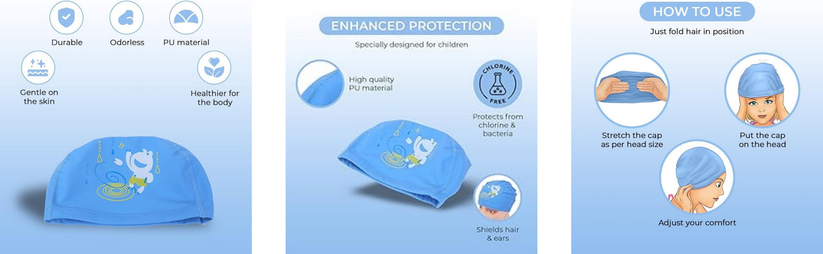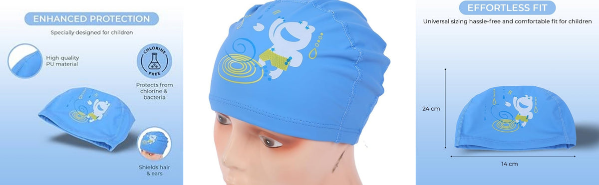 - ENHANCED PROTECTION: Specially designed for children, this swimming cap provides improved protection by shielding your hair and ears from direct exposure to chlorine and other waterborne bacteria, allowing you to maintain focus on your swimming practice and enjoy your swim to the fullest.