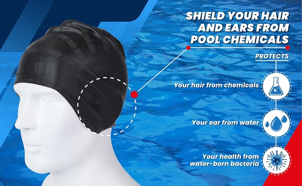 - ENHANCED PROTECTION: Specially designed for men and women, this swimming cap provides improved protection by shielding your hair and ears from direct exposure to chlorine and other waterborne bacteria, allowing you to maintain focus on your swimming practice and enjoy your swim to the fullest.