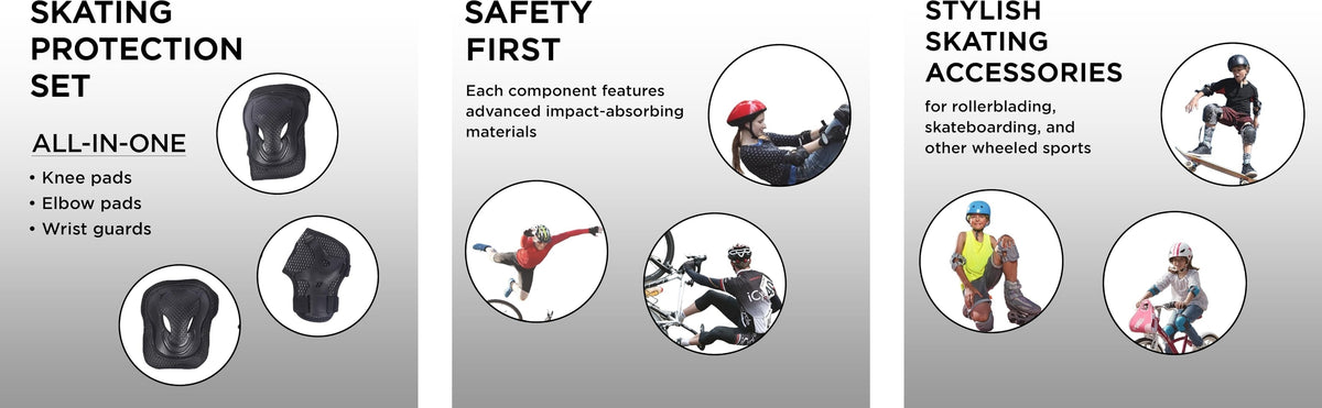 - SAFETY AT THE CORE: Prioritizing safety, each component features advanced impact-absorbing materials to minimize the risk of injury during falls or collisions. Specialized safety guards ensure protection during various skating activities.