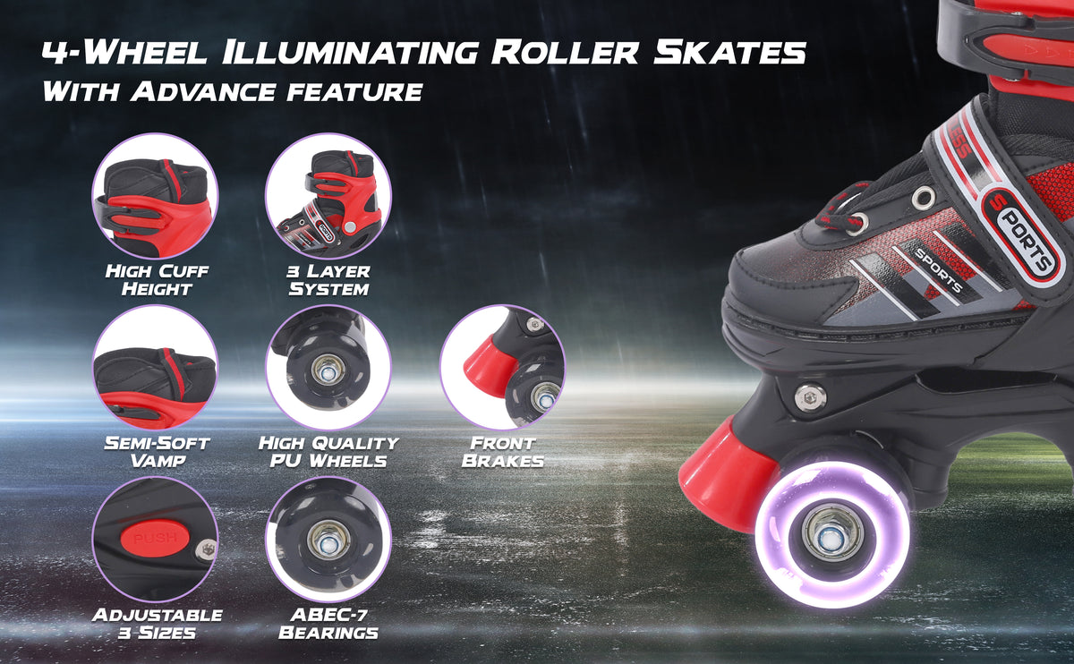 - ILLUMINATING WHEELS: The roller skates come with 4 illuminating wheels that light up automatically, creating a colorful and cool effect at night, making skating enjoyable and visually appealing.
