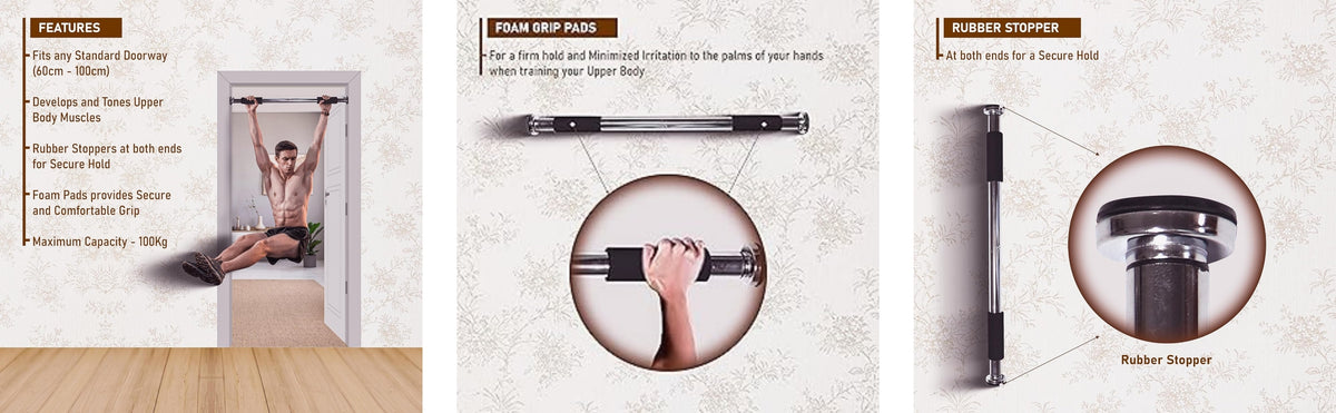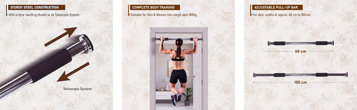 - SAFE AND SECURE - Heavy-Duty Steel coating with solid iron construction Pull-Up Bar and Door Mounts Provide Great Support and Safety - Holds up to (100kg).