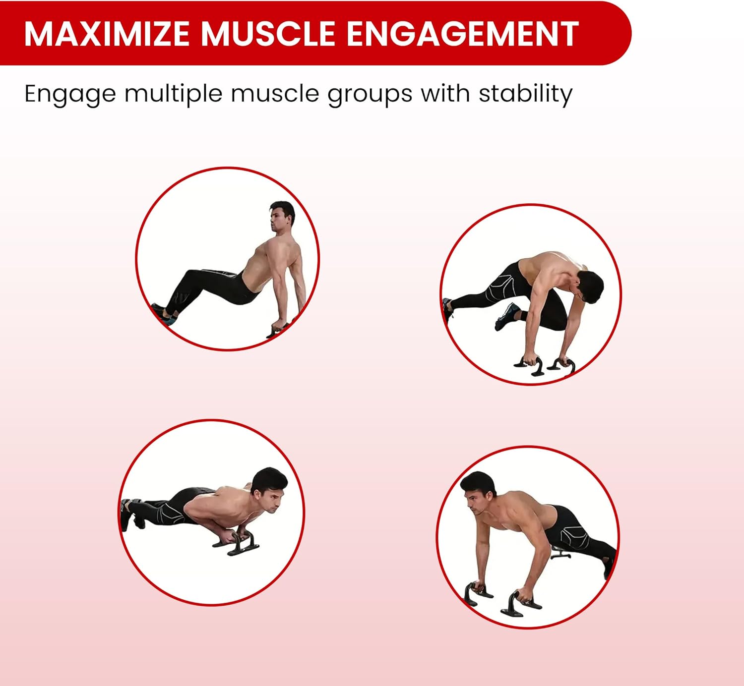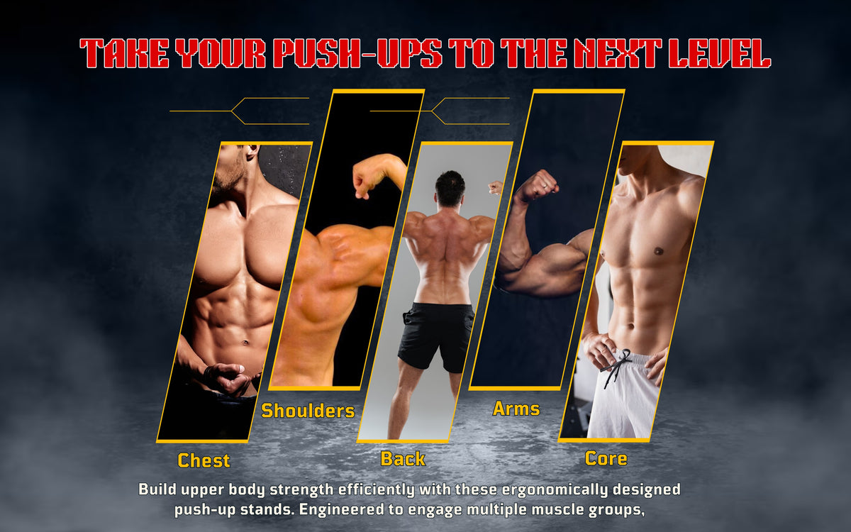 - EFFICIENT MUSCLE ENGAGEMENT: Utilize this pair of push-up stands to engage multiple muscle groups effectively, targeting the chest, abs, back, shoulders, and arms. The design enhances muscle activation and stability, reducing wrist fatigue during workouts.