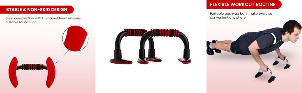 - STABLE, NON-SKID DESIGN: Constructed Steel and reinforced by an H-shaped, foam-layered structure, these push-up bars ensure a stable and secure foundation, preventing wobbling and slippage during intense workout sessions.