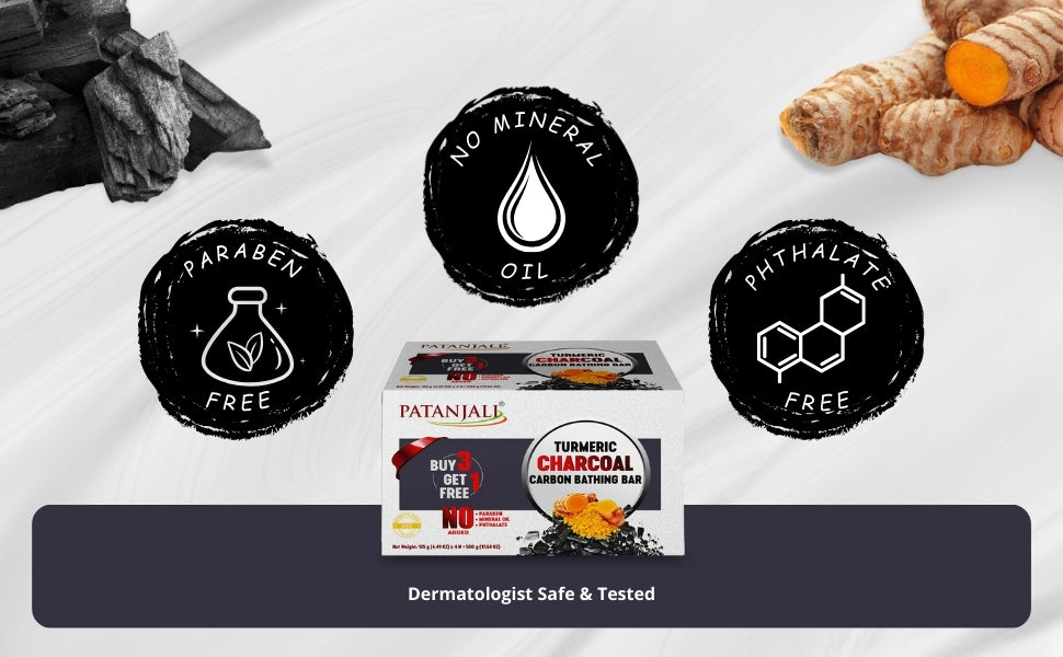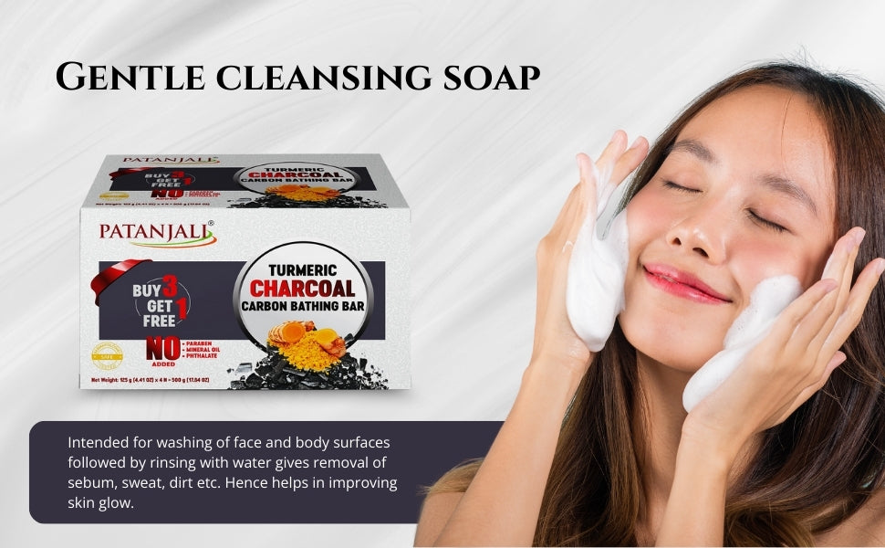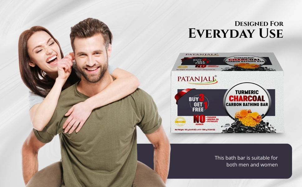 patanjali Turmeric Charcoal Bath Bar Soap 125g | Natural Body Cleansing Bar for Men & Women | Pack of 4