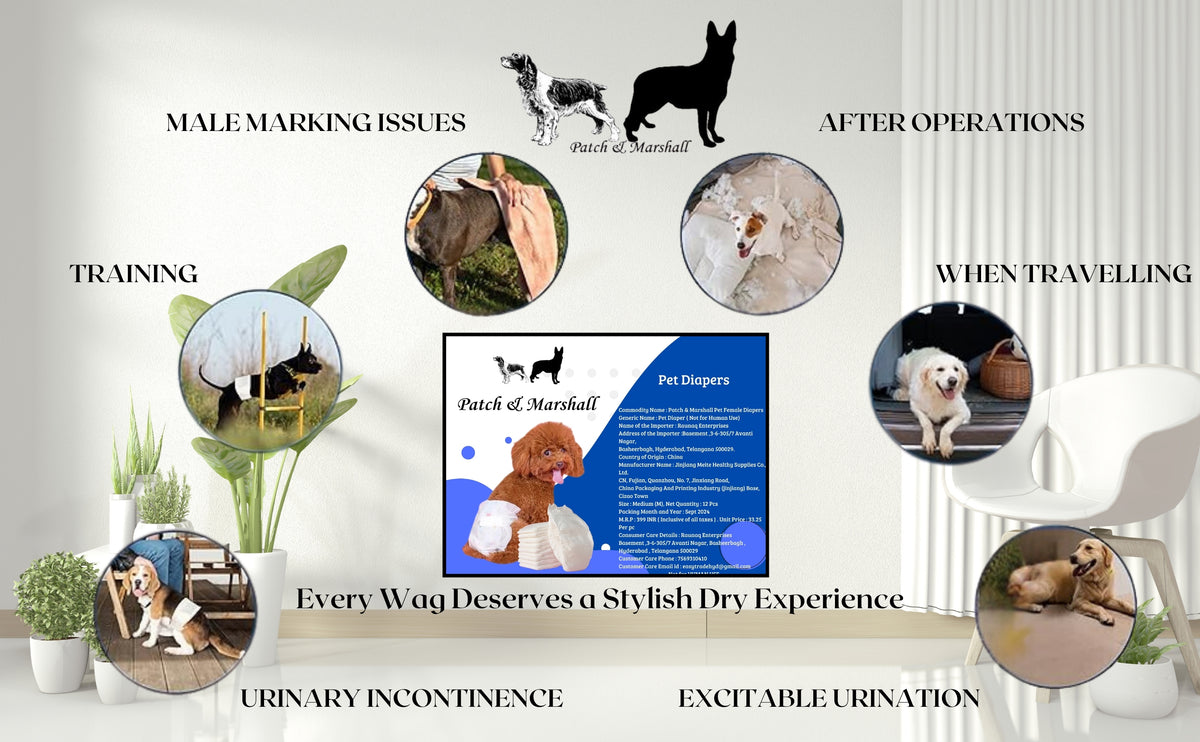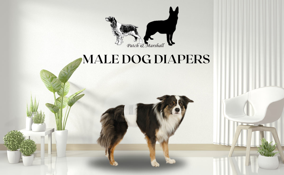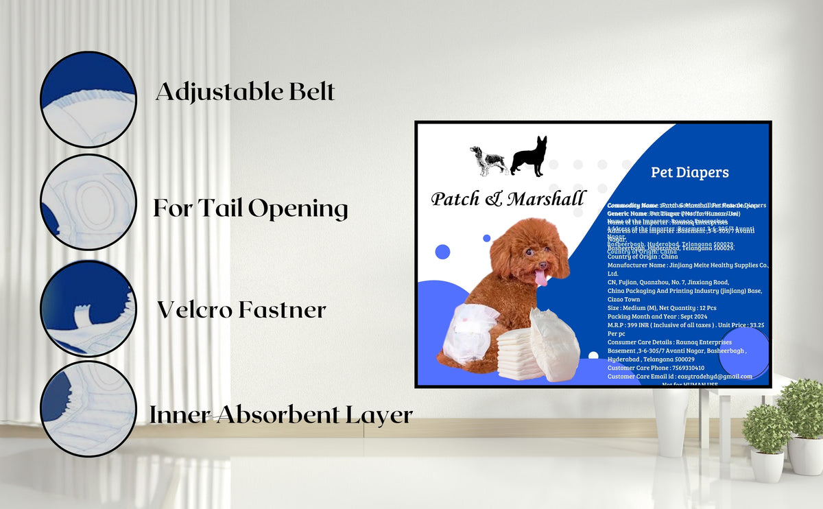 Patch & Marshall Male Dog Diapers | Leak-Proof and Ultra Absorbent | Disposable with Flexible Fit | For Daily and Travel Use | White | Medium | 12 pcs | Waist 7.5–21.7 in