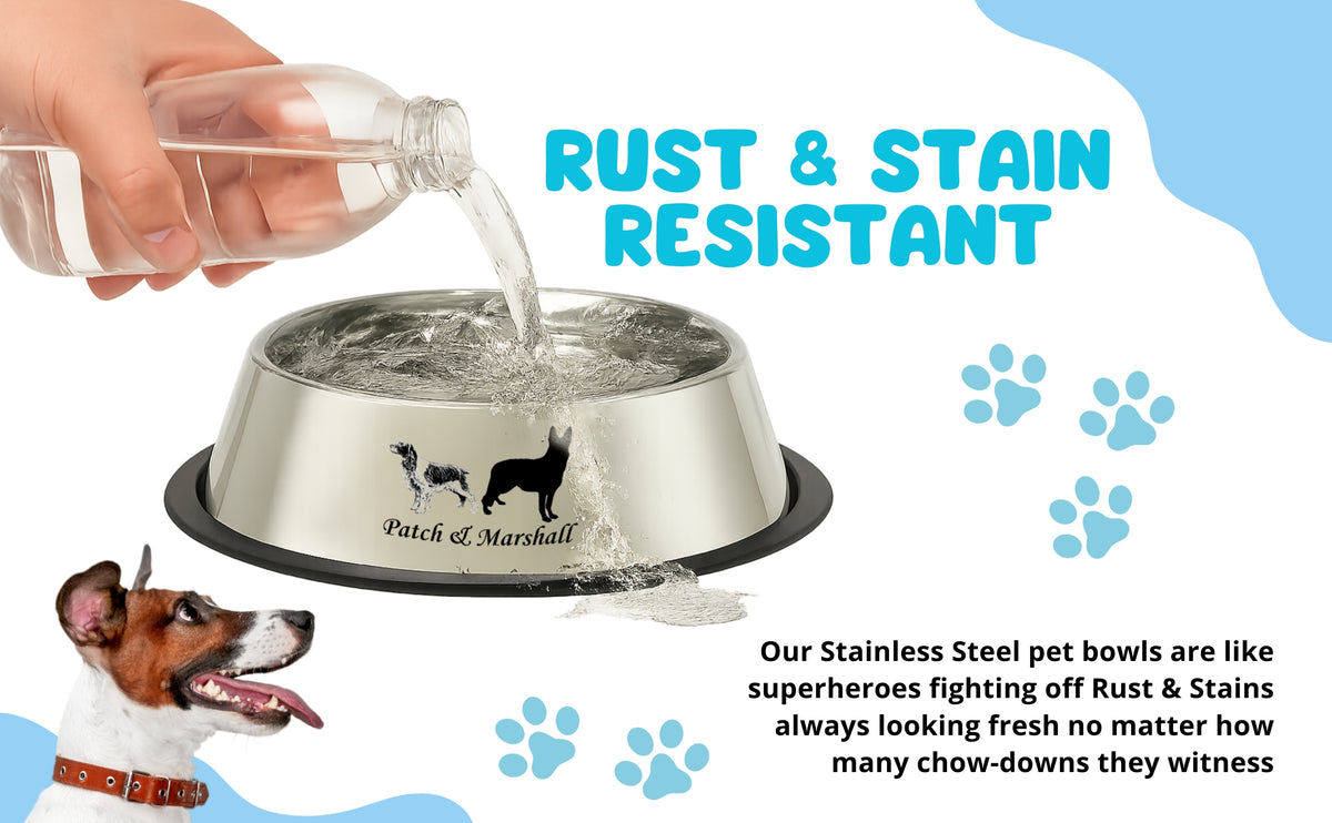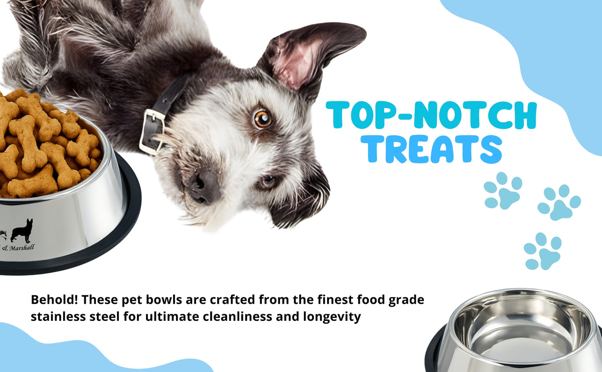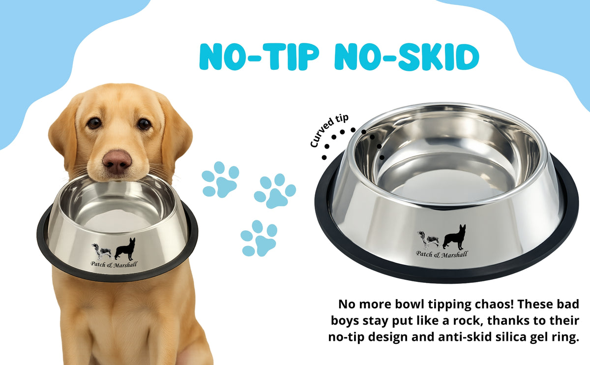 Patch & Marshall Pet Feeding Bowls – Stainless Steel with Anti-Skid Ring | Set of 2 | X-Large | Holds 900 g Food or 1600 ml Water | Silver | For Dogs and Puppies