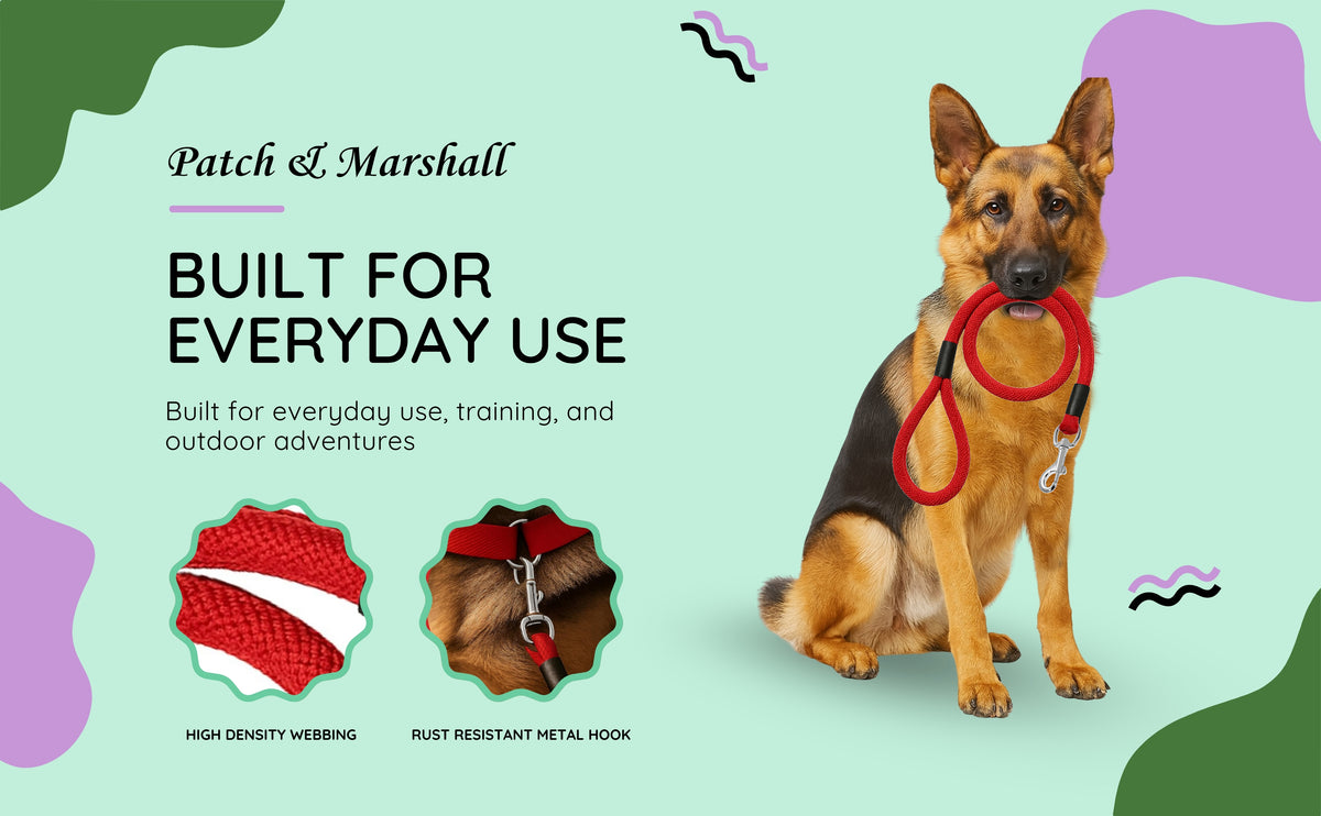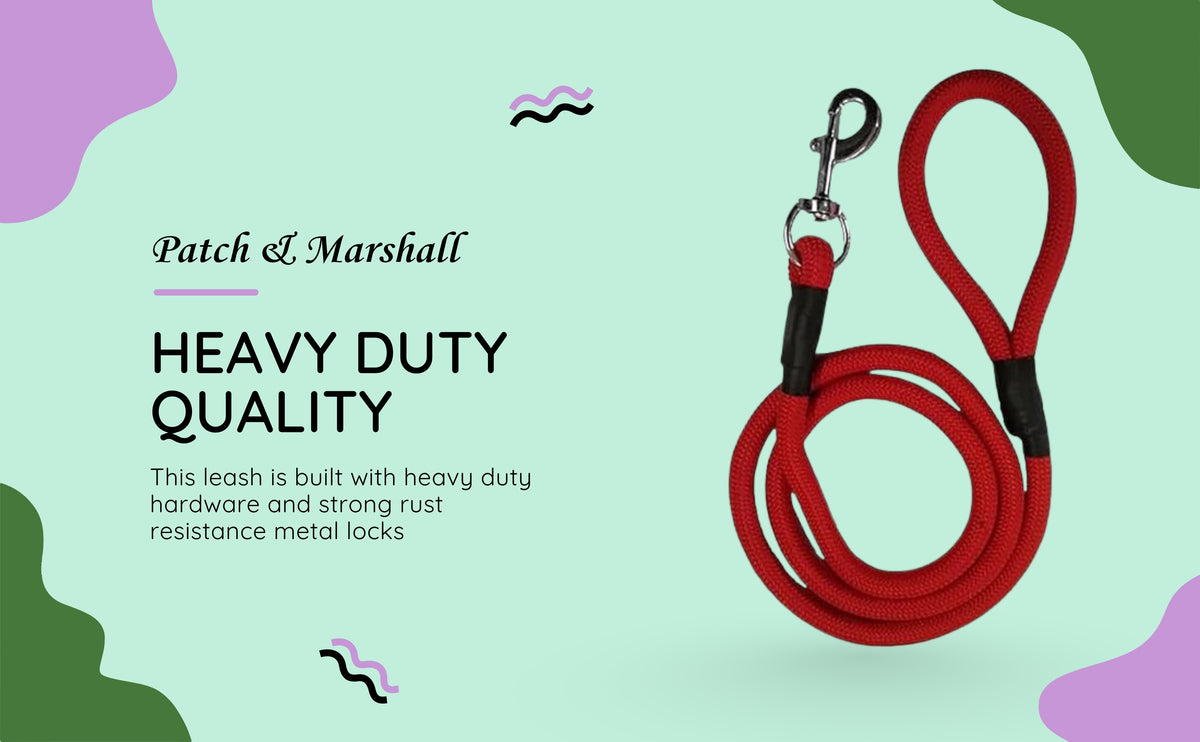 Patch & Marshall Rope Leash | Durable Nylon Leash for Medium and Large Dogs | XL Size | Red | 60 in | 15 mm Thick