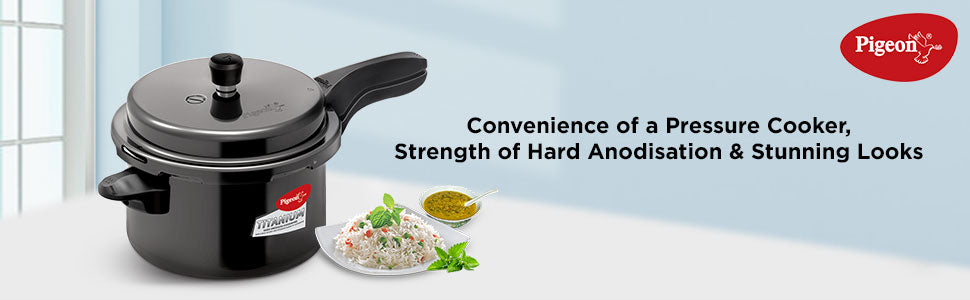 - Pigeon Titanium Hard Anodised pressure cooker comes with metallic safety plus feature and making your cooking experience safe.