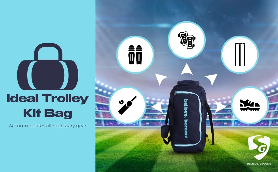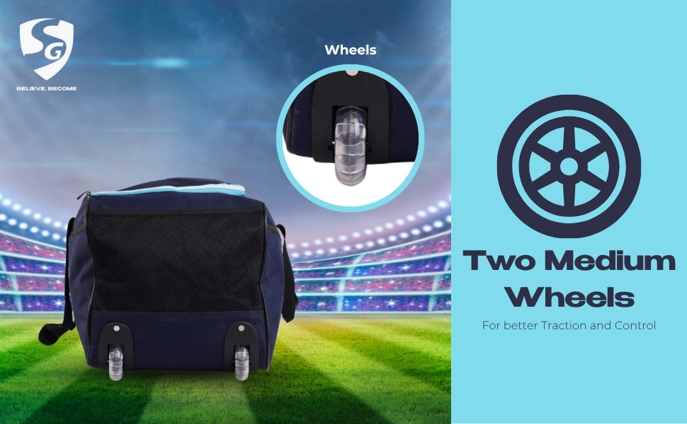 SG Cricket Kit Bag CLUBPAK Plus Trolley | NVY/Teal | Large | Polyester | Unisex | Durable Design | Spacious Storage | Easy to Carry | Trolley Style | Ideal for Cricket Gear