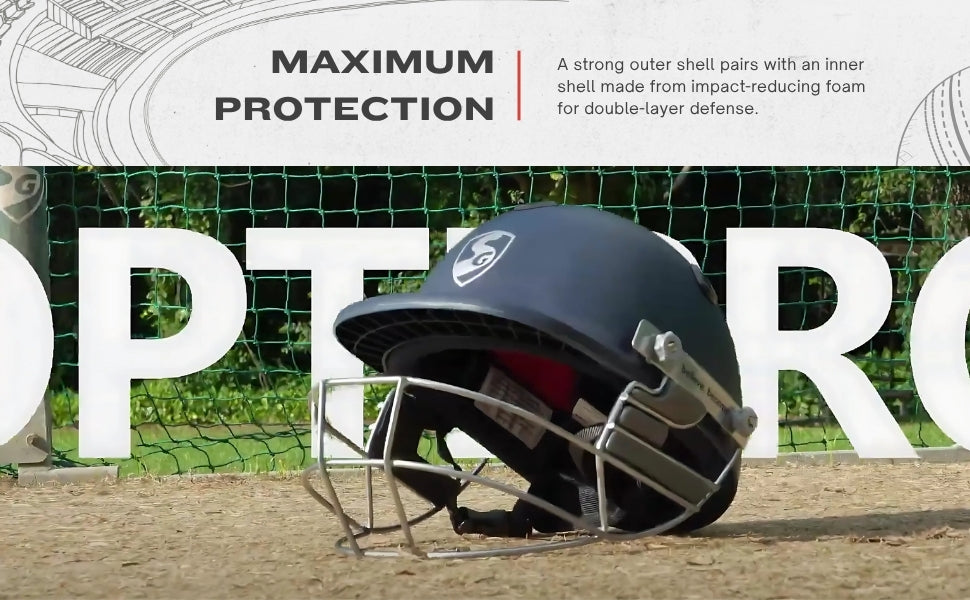 SG OPTIPRO Cricket Helmet | Navy Blue | Polypropylene Shell | Men & Boys | Adjustable Steel Grill | Breathable Padding | Impact-Resistant | Lightweight & Sweat-Absorbent