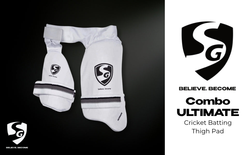 SG Ultimate Combo Thigh Guard | White | Men RH | Polyester | Men | Customised Adjustment | Thigh & Inner Thigh Guard | Comfort-Fit Elasticated Straps | Fully Adjustable | Secure Fit