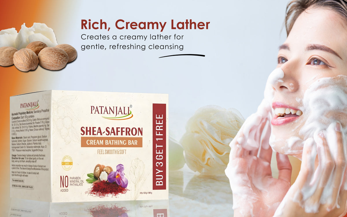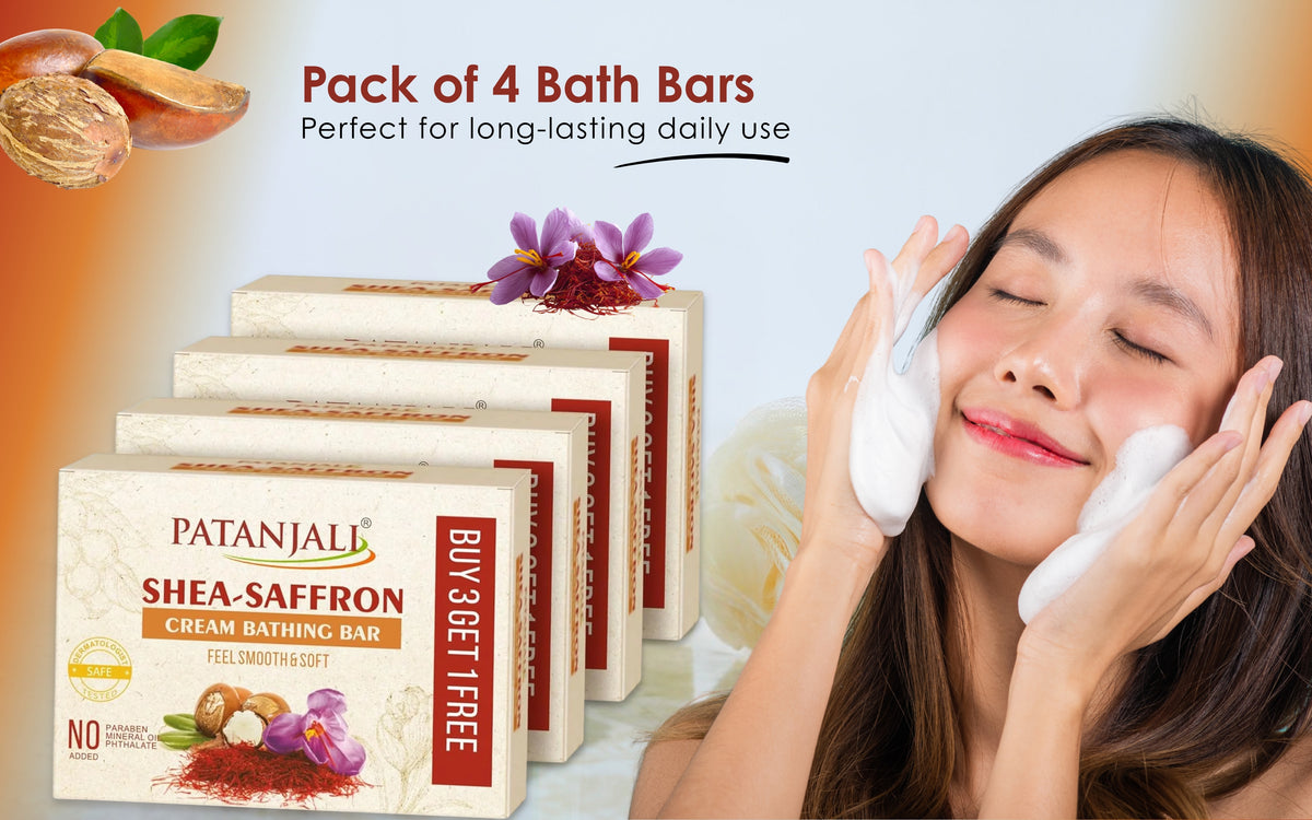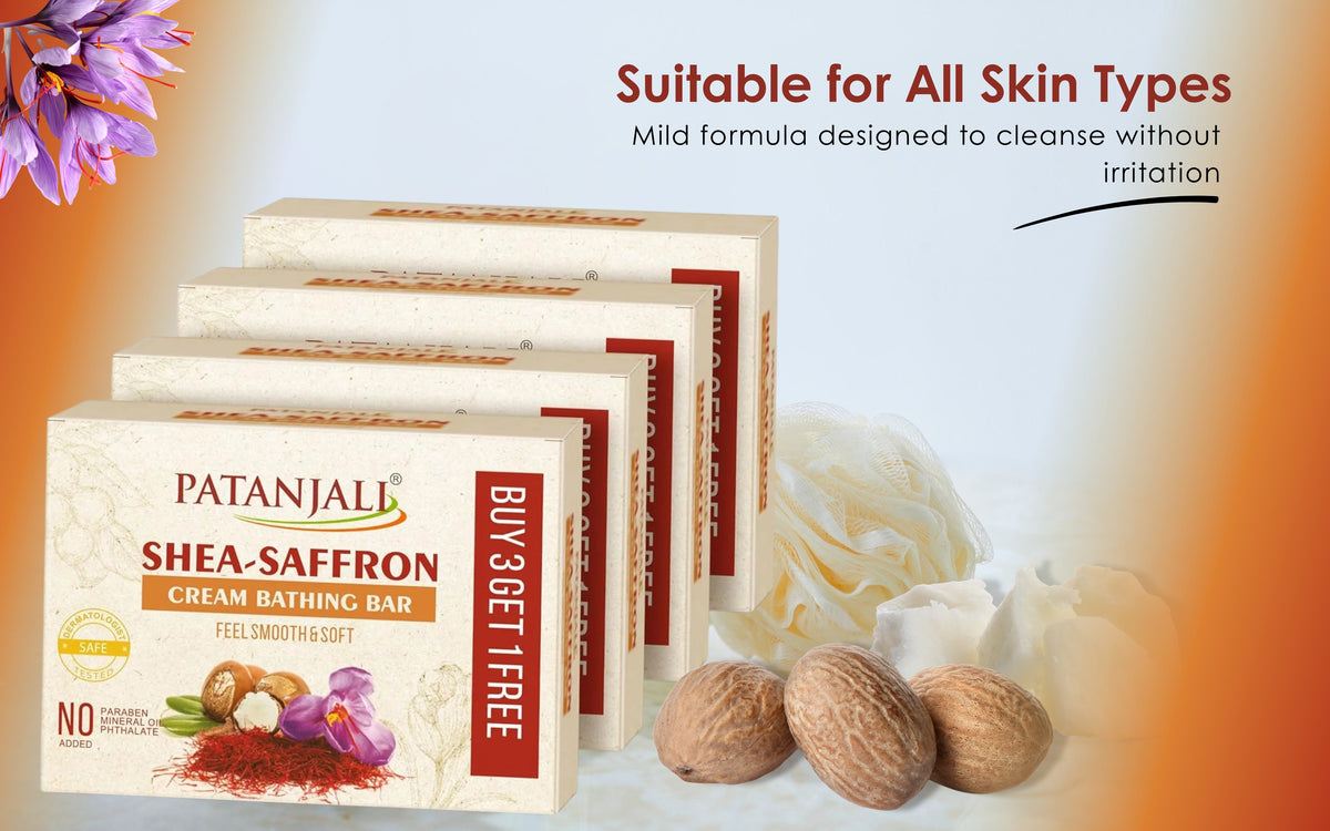Patanjali Shea Saffron Cream Bath Bar Soap 125g | Moisturizing Body Cleansing Bar | Pack of 4