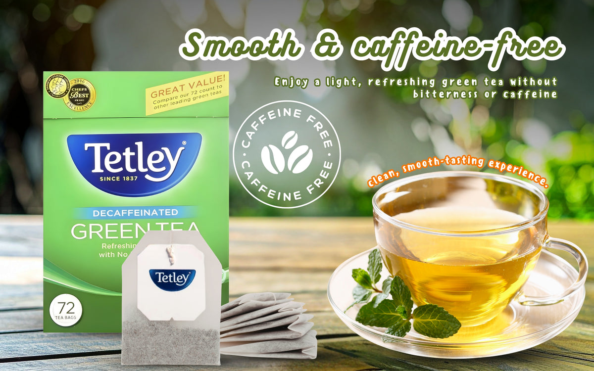 Tetley Green Tea Decaffeinated 72 Tea Bags (4.57oz) | Smooth and Refreshing Green Tea – Caffeine-Free Herbal Drink | Antioxidant-Rich Wellness Tea