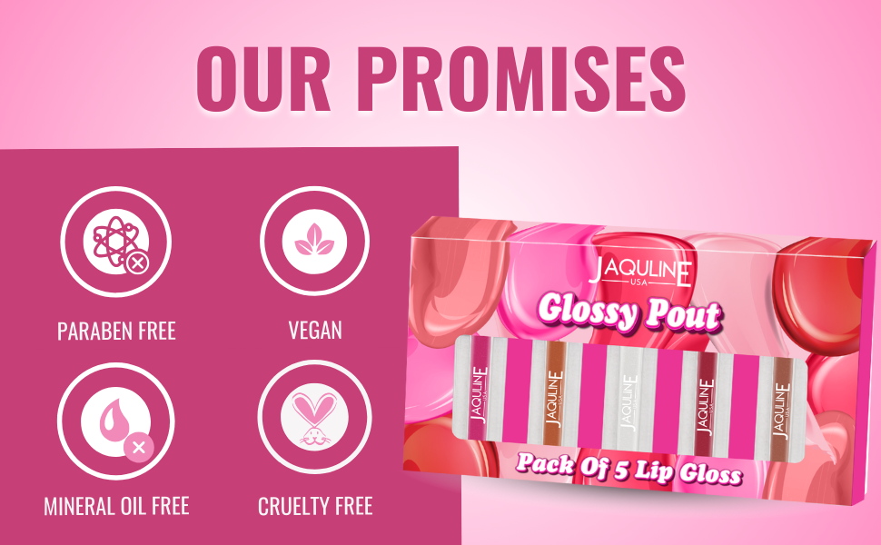 USA Glossy Pout Lip Gloss | Pack of 5 (1.2ml Each) | Long-Lasting Hydration, Smooth Texture & Moisturizing Formula for Soft, Shiny Lips