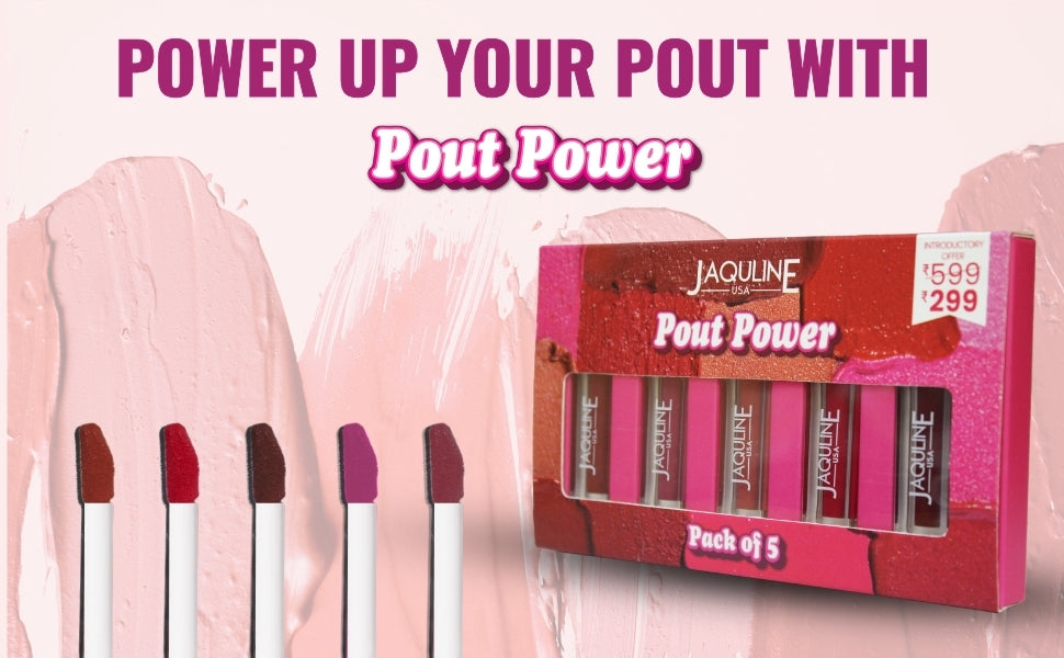 USA Pout Power Set of 5 Liquid Matte Lipsticks | Long-Lasting, Smudge-Proof & Highly Pigmented Shades – Comfortable All-Day Wear