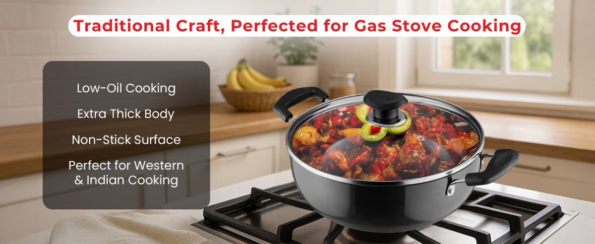 - Aluminium core ensures swift heat distribution, minimizing cook time and burnt meals. Effortless culinary perfection.