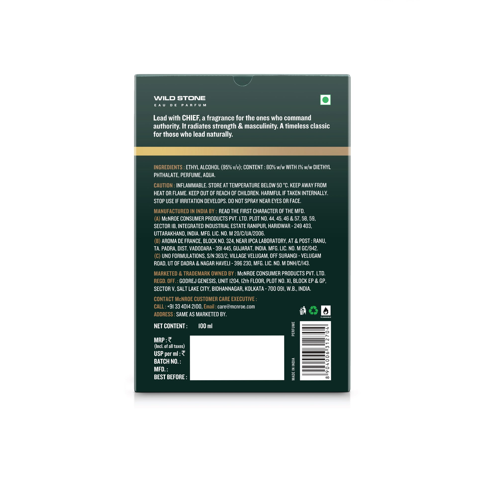 Wild Stone Chief Long Lasting Premium Perfume for Men | Eau de Parfum (EDP) | 100 ml / 3.4 Fl oz | Best Gift for Him l Premium Perfume for Men l Infused with Aquatic and Woody Notes