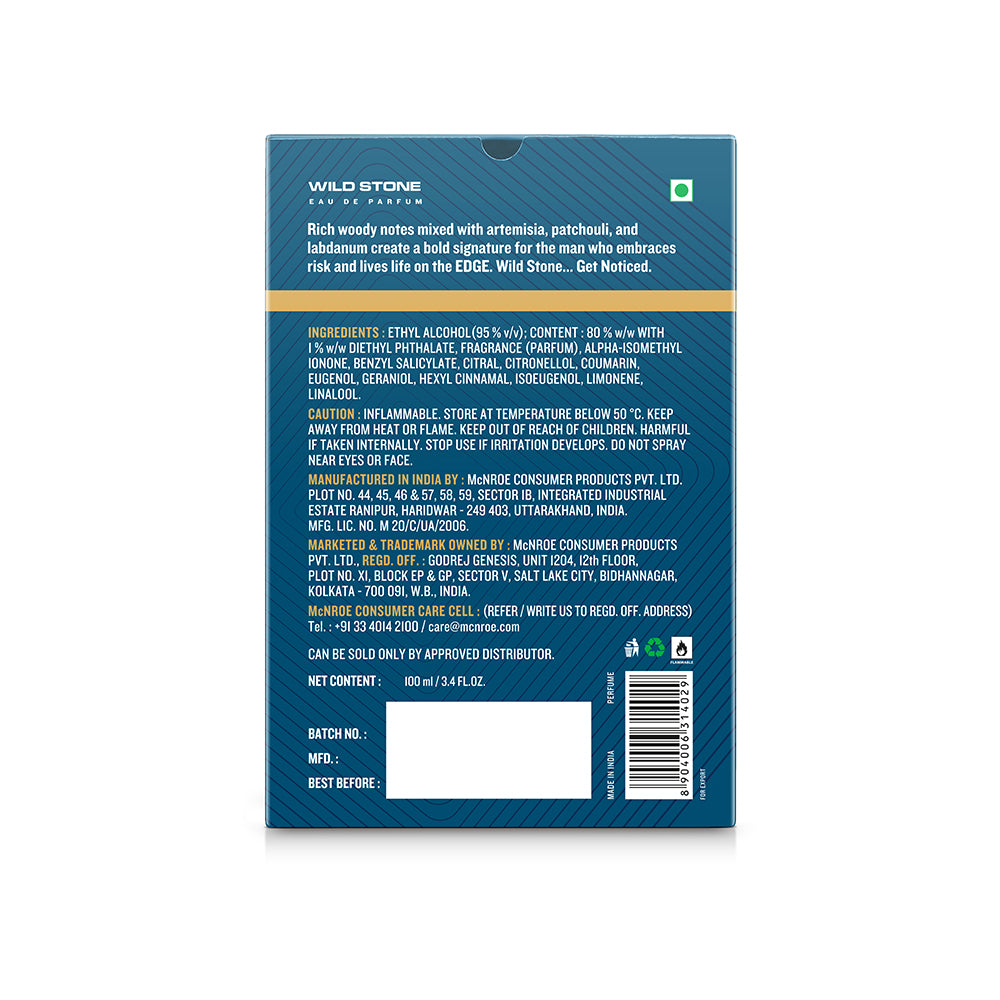 Wild Stone Edge Eau de Parfum for Men, 100 ml (3.4 Fl oz) | Long-Lasting Woody Fragrance | Up to 8 Hours Stay | Skin-Friendly | Budget Perfume for Modern Men